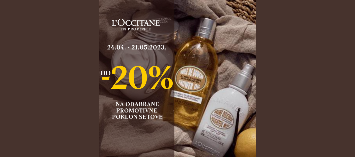 Iskoristite do 20% popusta i ne propustite L’Occitane promotivne poklon setove po posebnim cenama! Promotivna pogodnost je dostupna od 24.04.2023. – 21.05. 2023. ili do isteka zaliha.